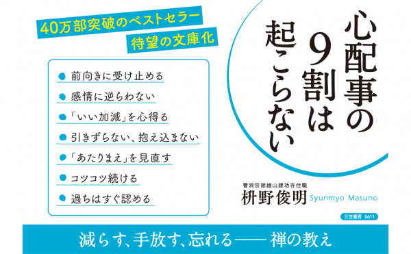 宗教入門 仏教入門 カテゴリー1位獲得 心配事の9割は起こらない 減らす 手放す 忘れる 禅の教え 著者枡野俊明 悩むより動く そのほうが物事は絶対うまくいく 株式会社三笠書房 プレスリリース配信代行サービス ドリームニュース